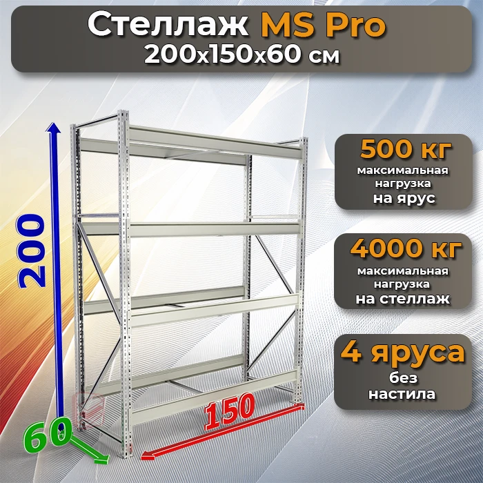 –Каркас стеллажа 4 яруса MS Pro 200х150х60 складской