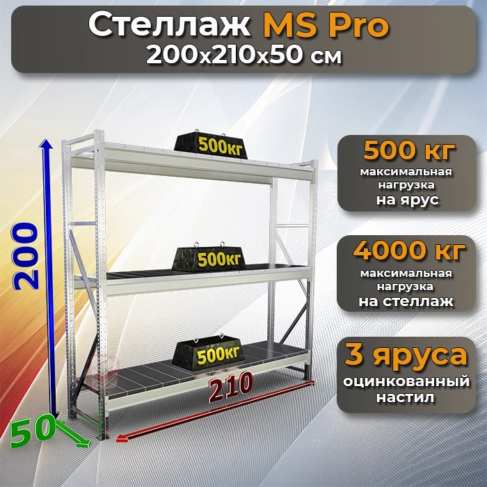 –Стеллаж среднегрузовой металлический MS Pro 200х210х50 3 полки
