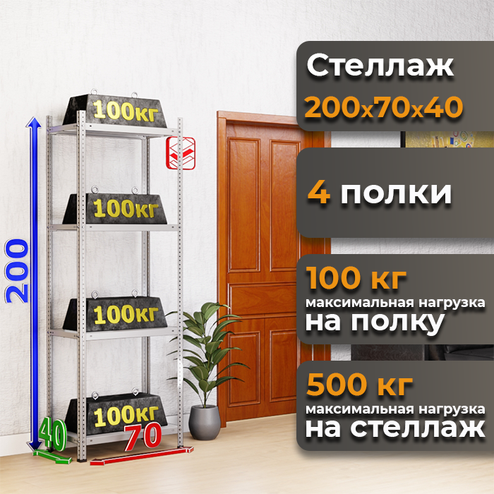 –Стеллаж в гараж 200х70х40 4 полки MS Standart