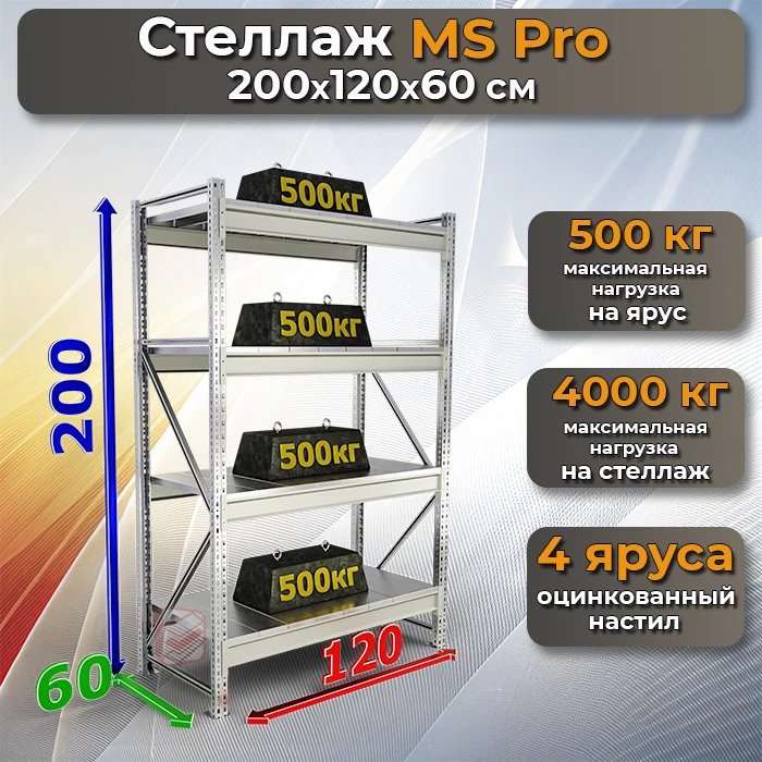 Этот стеллаж идеально подходит для хранения на складе, в гараже, торговых точках или любых других помещениях, где необходима надежная и долговечная система хранения. Стеллаж MS Pro 200х120х60 – это отличное решение для организации пространства и сохранности ваших вещей.