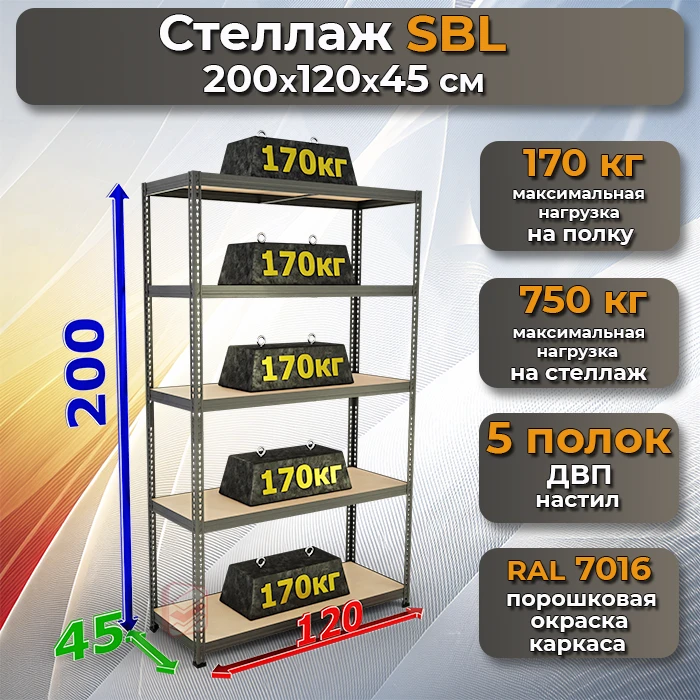 Cтеллаж лофт черный 5 полок SBL 200х120х45 металлический