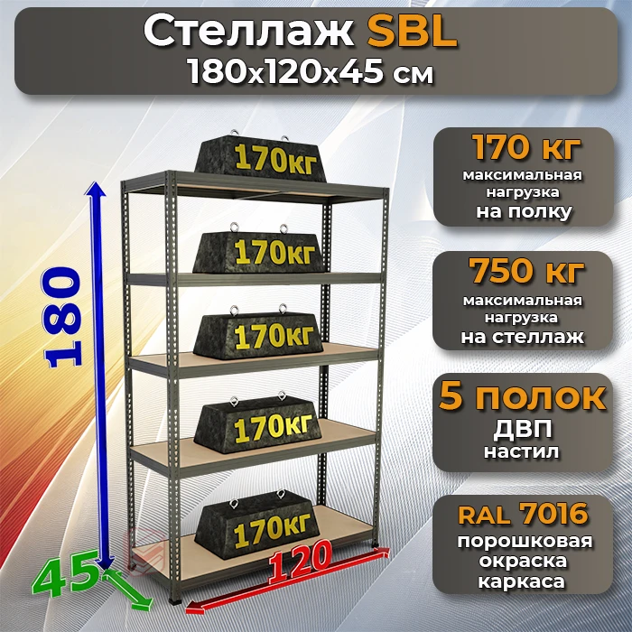 Стеллаж металлический безболтовой SBL 180х120х45 5 полок